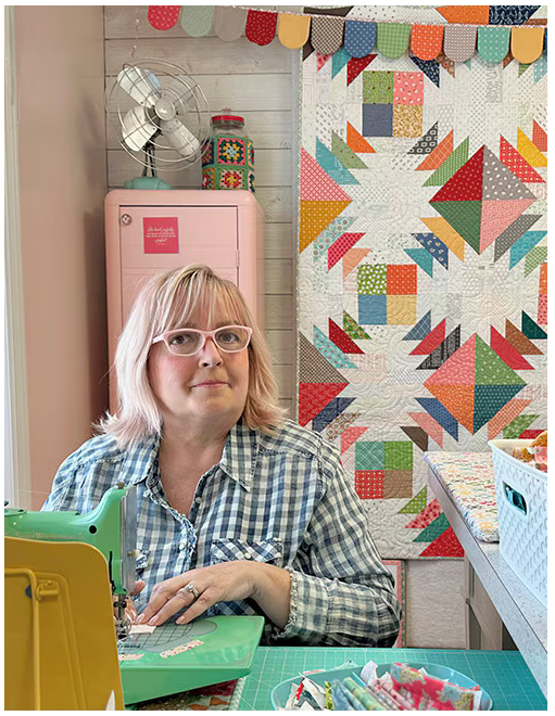 Lori Holt of Bee in my Bonnet is a small town farm girl who spent her childhood playing in the sunshine on tractors and climbing trees. She grew up happily immersed in all things domestic. Lori is the middle child of a large family and lives closely surrounded by grandparents, uncles aunts and cousins. Her mum says that she was practically born with a needle in her hand. Lori's earliest memories are of sitting underneath the quilting frames and threading needles for her grandma and great aunts until she eventually grew old enough to make stitches of her own. Lori began her company "Bee in my Bonnet" in 1994. Her wish is that her designs in both patterns and fabric will inspire others to create and pass down the valuable lessons of days gone by taught to us by our mothers and grandmothers.