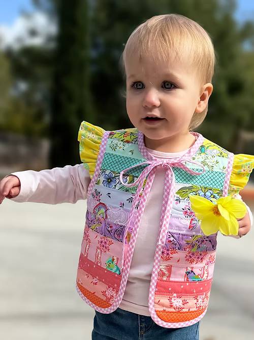 Meet the Harmony Baby Vest - a sweet and playful patchwork vest pattern for babies that’s fully reversible! Perfect for showcasing your favorite fabric rainbow and a standout feature print on the lining, this vest gives you two adorable looks in one.
