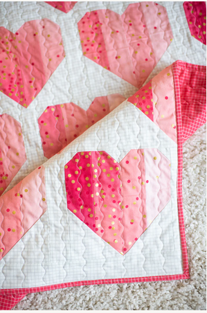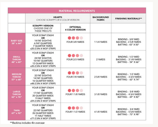 This sweet and simple heart quilt is scrap and stash friendly! Use a solid background or use your scraps for a scrappy background. Both options included in the pattern.