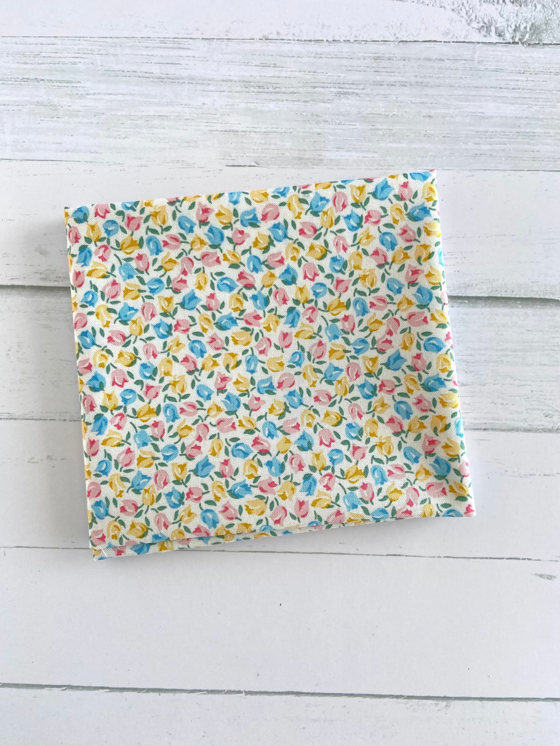 Liberty London Parks, this design is called Tiny Tulips A, and is covered in pretty little tulips. Screenprinted on Liberty Lasenby Quilting Cotton.