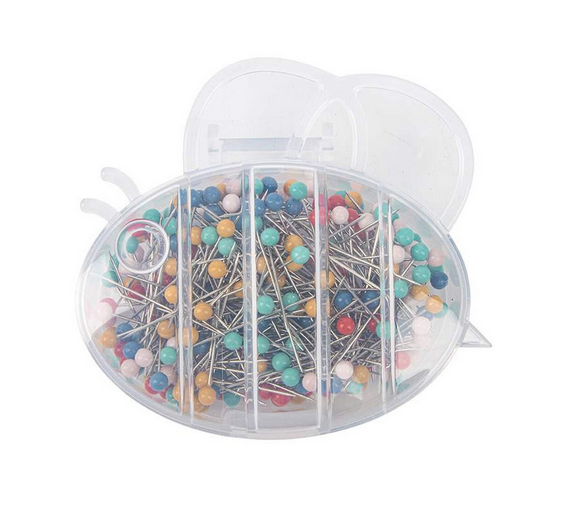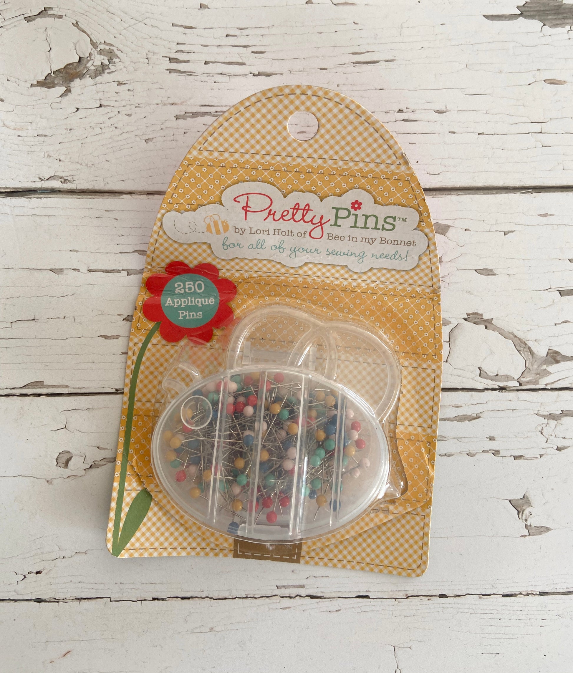 Lori Holt Applique Pretty Pins includes 250 super cute and colourful pins. They come in cute little plastic bee containers. These pins are shorter, so they are perfect for applique. Put some whimsy and vintage fun into your sewing by using these pretty pins.